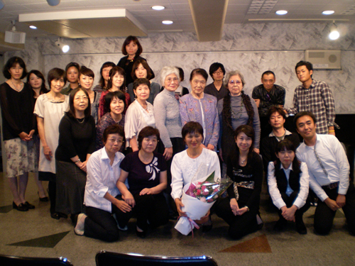 、みんなで歌を歌ったり、ピアノを始めたいきさつなど会話もはずみに楽しい交流会でした。それぞれが色々な環境の中で生活していく中、音楽でつながっていくっていいですね。この教室では様々な形で交流を深めて助け合っています。レッスンは厳しい(?)けど心はみんなファミリーです(5/22)